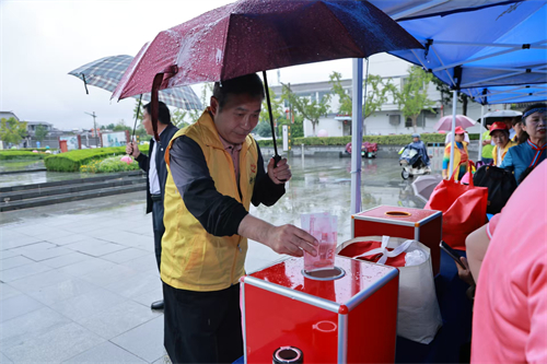 【本网讯】 奉献爱心做志愿者,志愿奉献爱满淮安。9月27日下午,淮安市淮安区孝行淮安志愿者协会在淮安府衙好人广场冒雨举行“久久公益活动”,吸引广大居民积极参加孝行志愿者服务活动,捐献爱心助力久久公益事业,为温暖困难群众献爱心。活动由江苏好人、淮安市道德模范、淮安区拥军协会会长李晓红,淮安市优秀志愿者、淮安区好人、《江苏视窗网》总编王世红主持。常务副会长邱以钧、张顺等负责人与100多名会员参加。 活动现场,协会常务副会长张顺主持召开了会员大会,他说,“久久公益”活动是一场传递爱心、汇聚温暖的活动,更是一次弘扬中华民族传统美德、践行社会主义核心价值观的具体行动。孝行淮安志愿服务的宗旨就是为广大老年人服务、为他人服务。其宗旨与“久久公益活动”是一脉相承的。孝行淮安志愿者协会举行助力久久公益事业活动,目的就是发挥广大会员与市民的爱心,为淮安区的慈善事业做贡献,同时以此活动形式扩大孝行淮安志愿者队伍,动员更多人参与到公益活动中来,让尊老敬老之风浸润社会。他还讲述了协会工作的具体规划、会员标准、募捐要求、用途等内容。 邱以钧、张顺、陈锦龙等协会领导就活动获得的爱心与会费标准依据、用途明细、缴纳方式等相关问题,一一与居民、会员进行答疑、交流。现场收到了许多会员对会费缴纳及对公益活动的一些合理化建议。 疑虑解开,踊跃捐款。广大会员与志愿者纷纷主动捐款助力久久公益事业。根据协会要求,凡是本次活动,捐款满200元者,现场扫码即成为协会会员,此费用并作为会员会费。很多市民积极参加募捐,两名消防战士闻讯也来到现场捐献了自己的爱心。 接着,孝行淮安文艺志愿者用精彩文艺表演,与广大市民共同迎接国庆与中秋双节的到来,祝福大家国庆快乐,中秋安康。(文/图 王世红 陈伯新 徐志喜) 编辑:王世红