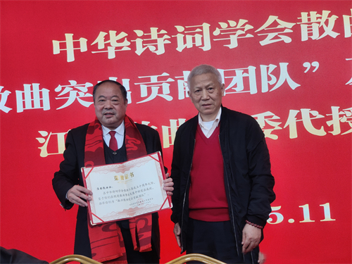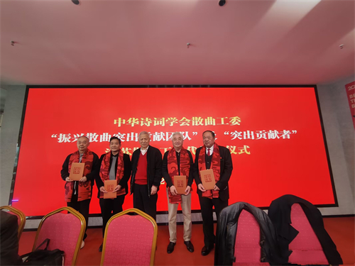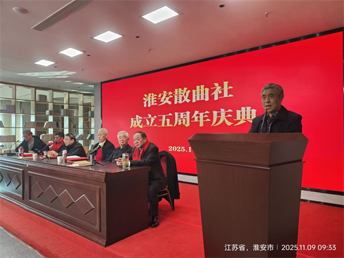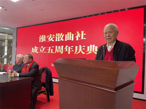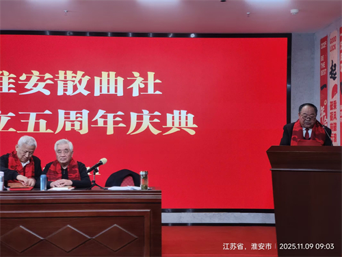 11月9日上午,淮安区诗词楹联协会在淮安巧斧家居有限公司举行淮安散曲社成立五周年庆典仪式。江苏省散曲工委领导发来贺曲。中华诗词学会散曲工委委员、江苏省诗词协会散曲工委常务副主任王裕禄,淮安区诗词楹联协会会长周学俊,省散曲工委委员、淮安散曲社社长毛峰,区诗协名誉会长、巧斧公司董事长吕万红分别致辞讲话。淮安区诗词楹联协会副会长、淮安散曲社副社长梁寿海作五年工作总结报告。江苏省诗协散曲工委副主任、邳州散曲社社长冯凯军,江苏省诗协散曲工委委员、扬州市诗协散曲工委主任蒋成忠,淮安市诗协秘书长华跃,淮安散曲社名誉会长钱万平与区诗协领导班子其他成员、散曲界同仁,近50人出席。仪式由淮安散曲社常务副社长蒋长富主持。 淮安散曲成立社五年来,共出微刊88期,编写散曲出书三本,集中采访、学习、交流遍布28个市县区,邀请专家指导、授课6次,有23人作品被区以上刊物采用。 王裕禄代表省诗协副会长杨学军致辞,高度肯定淮安散曲社五年来在散曲传承与创作中取得的成果,提出四点期望。一要强队伍优建设,深化“老带新、传帮带”机制,吸纳更多的青年爱好者与文学新人。二要出精品树标杆,推行精品战略,深耕运河文化、名人典故等地方特色题材,推出代表江苏水平的精品力作。三要抓活动聚人心,丰富活动形式与内涵,围绕创作关键课题开展研讨。四要扩影响促传承,通过区域性竞赛发掘人才,建设用好培训教育基地,推动散曲教学进校园、进社区,贴近生活、扩大受众。 周学俊代表区诗词楹联协会祝贺淮安散曲社成立五周年,高度赞扬陈精国、张志友、卢顺贞等散曲家为散曲社高质量发展做出的贡献。要求全区各级诗词楹联协会、诗社抓好散曲工作的提升与发展,打造好淮安区诗词楹联文化特色品牌。 毛峰在致辞中表示,五年来取得丰硕的成果,得益于各级领导关心与各界同仁的支持。对他们的关心与支持表示感谢。今后将进一步提升创作水平,创作出更多具有思想深度、艺术高度和时代特色的优秀作品。 吕万红讲话中指出,近年来巧斧家居坚持把诗词楹联文化,特别是散曲文化作为企业文化的重要组成内容来抓,促进员工学写诗词、学创散曲的积极性,不断提升企业文化凝聚力,推动了企业的高质量发展。 庆典仪式上,王裕禄代表中华诗词学会散曲工委向淮安散曲社与冯凯军、毛峰、蒋成忠、王来发四人,分别授予“振兴散曲突出贡献团队”与“振兴散曲突出贡献者”荣誉称号。区诗词楹联协会副会长王世红诵读了来自省散曲工委领导发来的贺曲,华跃用吟唱的方式对淮安散曲社五年来取得的成绩表示祝贺。盛会还举行了散曲吟诵庆贺活动。散曲界各位老师依次登台,诵读自己创作的《贺淮安散曲社成立五周年》散曲作品。(王世红 陈伯新) 编辑:王世红