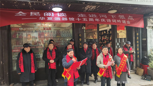 诗韵与酒香交织,文脉与匠心共鸣。12月24日上午,为庆祝淮安华夏酒器馆成立15周年,淮安区河下诗词楹联协会组织部分会员走进这一文化地标,举办了一场别开生面的“全民阅读走进景点”诗联吟诵会,让传统文化在诗酒交融中焕发新光彩。 活动伊始,在淮安区河下诗词楹联协会会长邱以钧和淮安华夏酒器馆馆长钱从顺的陪同下,大家首先参观了馆内陈列的琳琅满目的酒器藏品。从古朴的青铜酒樽到精美的陶瓷酒具,从少数民族特色器皿到现代工艺精品,跨越数千年的酒器文明在眼前徐徐展开。诗人们驻足于一件件展品前,聆听钱馆长讲解背后的历史故事与工艺精髓,在氤氲的文化气息中汲取创作灵感。“一件酒器,就是一段凝固的历史。”一位诗人感慨道。参观过程中,诗人们不时交流赞叹,深厚的酒文化底蕴与工匠精神,为他们的创作注入了鲜活素材。 参观结束后,吟诵会正式拉开帷幕。邱会长首先发表热情洋溢的致辞。他说,将全民阅读活动与景点文化、周年庆典相结合,是一次创新尝试。“华夏酒器馆不仅是收藏之所,更是文明传承的课堂。今天我们以诗为媒,以声传情,送上对酒器馆成立15周年的祝贺。”会长还表示,未来将继续探索诗词文化与各类场馆、景点、节庆的结合点,让全民阅读以更灵动、更接地气的方式融入城市文化生活,为传承中华优秀传统文化、丰富群众精神世界持续贡献力量。 钱馆长在讲话中回顾了酒器馆十五载栉风沐雨、守护文明的薪火历程。他动情地说:15年来,酒器馆从无到有、从小到大,从最初的几件藏品发展到现在的数千件珍贵酒器,每一件藏品都凝聚着他的心血与汗水,今天诗人们的到来,用最美的汉语为这些无言器物‘发声’,让静止的展览‘活’了起来,这是对华夏酒器馆最好的生日贺礼。他表示,酒器馆将继续秉持"传承文化、服务社会"的宗旨,不断提升展陈水平,创新传播方式,让更多人了解酒器文化、感受传统文化的魅力。同时,酒器馆也将加强与诗协等文化团体的合作,共同为传承中华优秀传统文化发挥余热。 河下阅读会骨干人员,吟诵了协会诗人特为华夏酒器馆成立15周年创作的贺诗。这些贺诗或赞美酒器之美,或讴歌文化传承,或抒发家国情怀,每一首都饱含着会员们对酒器馆的赞美和对传统文化的钟爱之情。"万千酒器盛收藏,瑰宝奇珍满琳琅。樽爵瓶壶流异彩,形文饰艺绽荣光。热心服务迎贤客,真挚弘扬拂芳香。古运长廊增特色,江淮一绝堪无双。"邱以钧会长赞华夏酒器馆一首诗,道出了现场所有人的心声。 诗韵流淌,酒香绵长。此次“全民阅读走进景点”特别活动,打破了传统阅读活动的空间限制,开创了“诗词文化+文博场馆+周年庆典”的新型文化活动模式。在庆祝华夏酒器馆十五岁生日的同时,也为“诗与远方”的融合写下了生动注脚,为书香社会、文化城市建设增添了馥郁芬芳。诗人们用笔墨记录时代印记,用声音传播文化强音,让市民游客在参观游览河下古镇的同时,享受到高层次的精神文化盛宴。(图文:王世红) 编辑:王世红