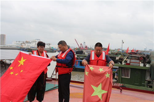 【本网讯】 “国庆”即将来临,为进一步规范国旗使用行为,9月25日上午,淮安区港航事业发展中心党员服务队6名队员分成两组,来到京杭大运河淮安锚地淮安区段停泊区登上往来船只,向广大船民宣讲《国旗法》知识。 图1:图为图为党员服务队队员为船民更换新国旗时向广大船民宣讲《国旗法》知识 在宣讲现场他们对个别船民存在升挂污损、褪色国旗的不规范现象进行劝诫,并教育这些船民要尊重和爱护国旗,维护国旗尊严。要求这些船民严格规范悬挂国旗,不要倒掛国旗、不要随意丢弃国旗,不要在私人丧事活动中使用国旗。并告诉这些船民,在公共场合故意以焚烧、毁损、涂划、玷污、践踏等方式侮辱国旗的,将会被依法追究刑事责任。、 图2:图为党员服务队队员为船民更换新国旗 一些船舶上悬挂的国旗,经风吹、日晒、雨淋,有的出现残缺不齐,有的褪色严重,志愿者们特置一批(50面)新国旗,在大运河上向需更换的船民赠送,一面面中国红飘扬在水面上,成为一道最靓丽的风景线,深受水上企业户和广大船民的欢迎。 编辑:王世红